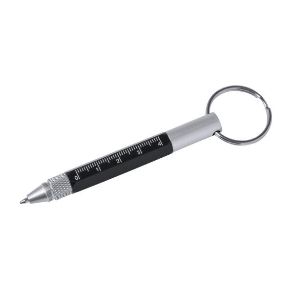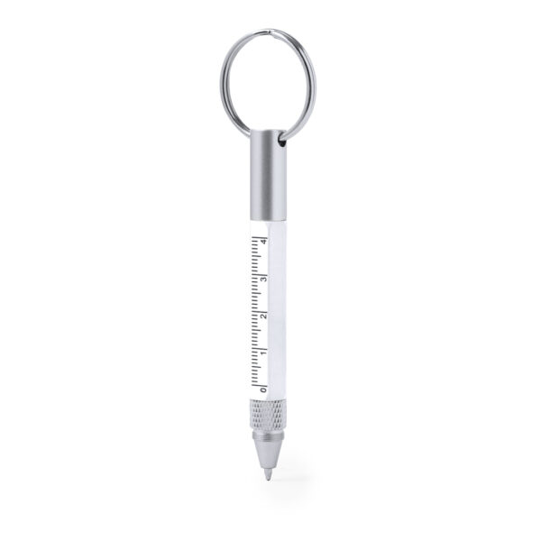 Práctico bolígrafo multifunción fabricado en aluminio. Con 5 funciones diferentes: bolígrafo, regla, puntero, destornillador plano y philips. Disponible en variada gama de colores y presentado en bolsa individual reciclada.