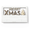 Original imán Merry Christmas fabricado en madera natural, con texto troquelado y de original acabado bicolor. Amplia superficie de marcaje y distintivo Made In Europe.
